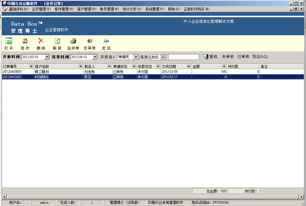 印刷記賬軟件,印刷訂單管理