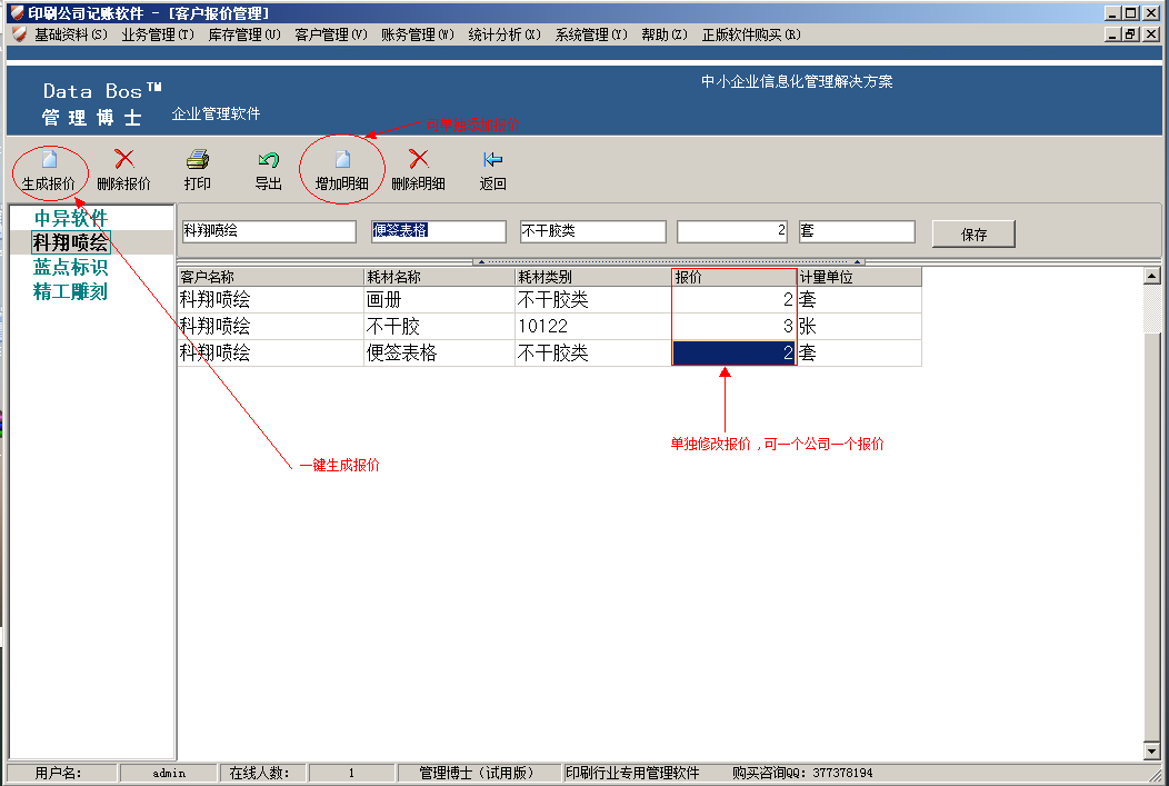 印刷記賬軟件,印刷客戶報(bào)價(jià)