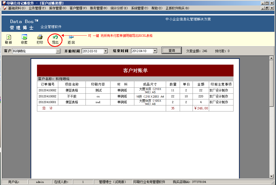 印刷記賬軟件,印刷業(yè)務(wù)客戶對賬,印刷客戶對賬