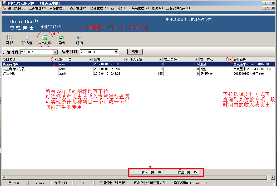 印刷記賬軟件,為企業(yè)量身定做,簡化公司管理,提高員工工作效率,免費(fèi)下載試用 測試用戶名:admin 密碼:空